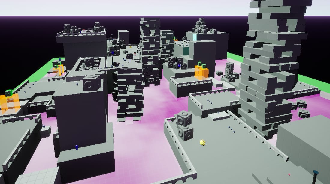 - Spawns blocks with different sizes and colors.